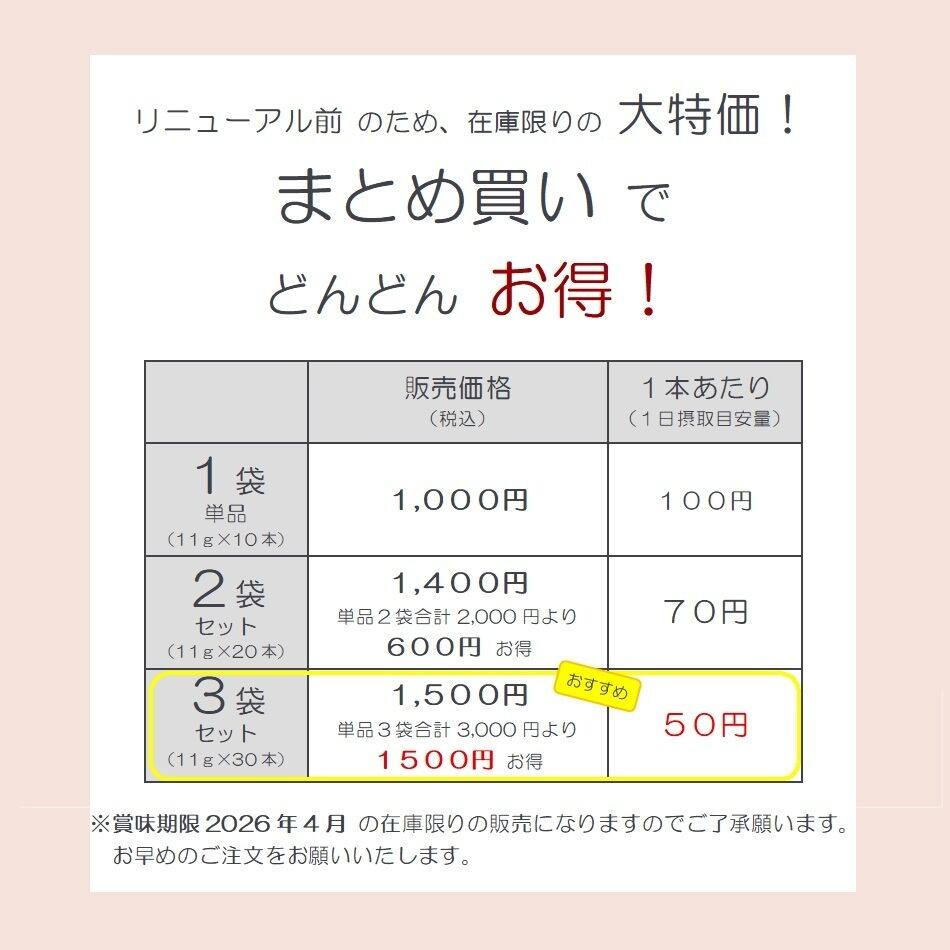 単品3袋合計3,000円より 1,500円 お得!